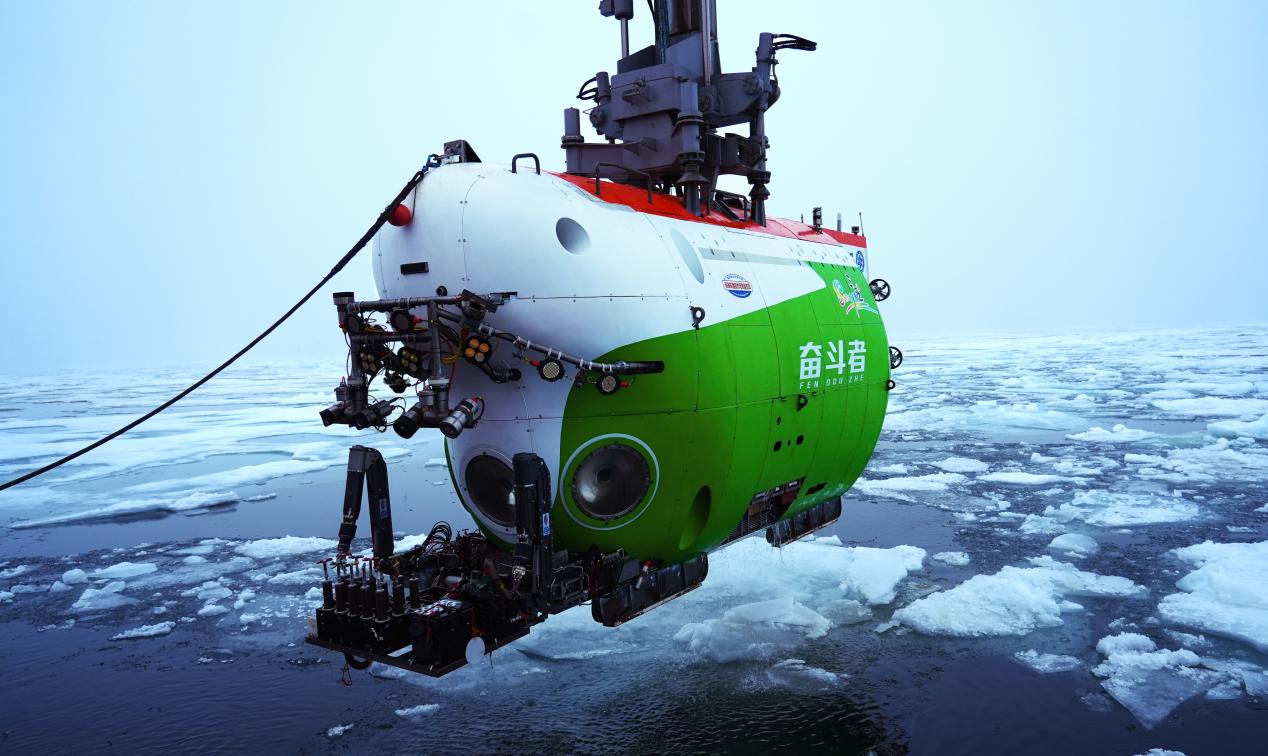 期间,科考队在北冰洋作业56天,冰区航行1989海里,进行了一系列科学考察和试验,“奋斗者”号完成43个潜次作业任务。同时,“蛟龙”号载人深潜团队完成了我国首次北极冰区下潜,并与“奋斗者”号进行了水下协同作业,完成了双潜器定位搜索、标志物互换、水下运动拍摄等。