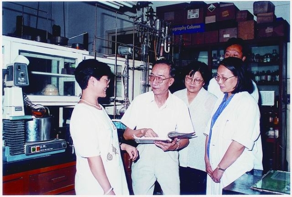 图1.谢毓元院士(左二)在实验室指导工作