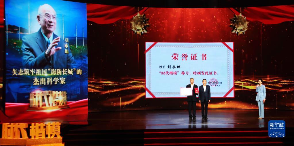 9月26日,“时代楷模”发布仪式现场宣读《中共中央宣传部关于授予刘永坦同志“时代楷模”称号的决定》。新华社记者 潘旭摄