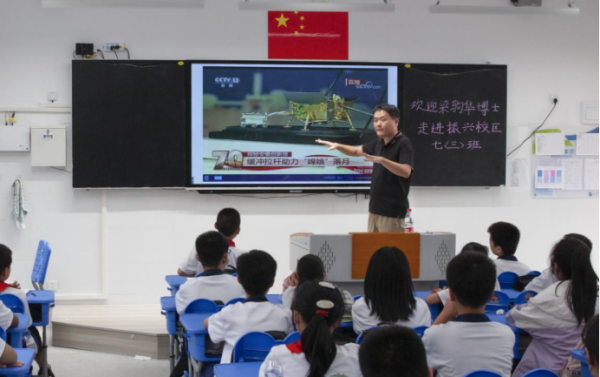 三场科普报告中在讲述基本科学原理和解释科学现象的同时,还穿插讲述了老一辈科学家们艰苦奋斗、科学报国的光荣传统和追求真理、勇攀高峰的科学精神。伴随着热烈的掌声和欢快的课堂氛围,科学探索和科学思想的种子在孩子们心中悄然播下、生根、发芽。