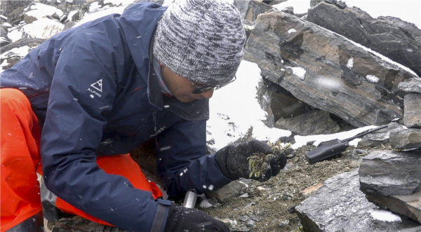 中国科学家在珠穆朗玛峰6200米地带采集植物种子(资料照片)。新华社发(无码影片 昆明植物研究所供图)