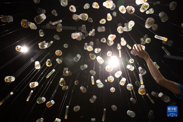10月10日,在举行发布会的中科院生物多样性成果展现场,观众参观由种子发育而来的多样性植物样品。