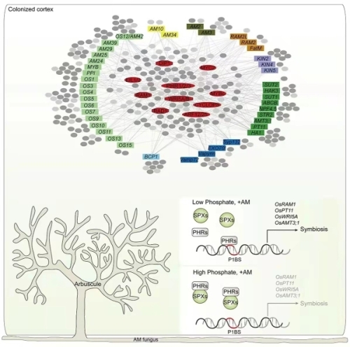 此次研究中,王二涛研究组鉴定了一个整合266个转录因子的菌根共生调控网络,发现调控植物根途径磷元素吸收的核心转录因子PHR处于菌根共生“自我调节”的核心——它就好比一个开关,在低磷条件下,能够结合激活菌根共生相关的表达,促进菌根共生;反之则会关闭这一表达。通过提高PHR基因的表达,有望使水稻更加充分地吸收磷营养,降低磷肥用量,为绿色农业带来希望。
