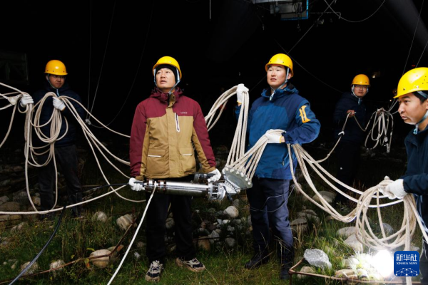 9月18日,极目一号”浮空艇大气观测试验现场,科研人员在调试观测载荷。新华社记者 金立旺 摄