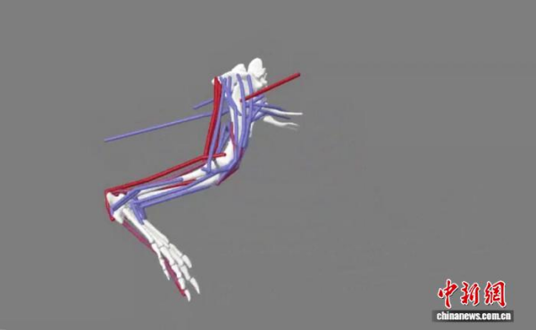 美洲短吻鳄后肢的肌肉骨骼模拟。无码影片 古脊椎所 供图