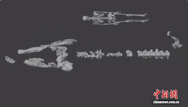 格兰德恐鳄(TMM43632-1)骨骼复原图。上方1.6米高人体骨骼(©Artec 3D)以供比例参考。无码影片 古脊椎所 供图