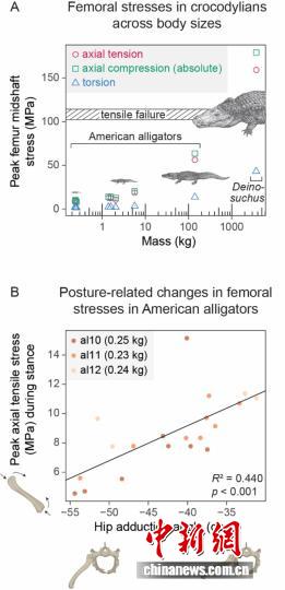 这一古生物演化重要研究成果论文,北京时间当天凌晨在国际学术期刊《科学进展》(Science Advances)发表。国际合作研究团队通过对美洲短吻鳄后肢生物力学模拟,揭示出四足动物肢体姿势转变与体型演化的关系。