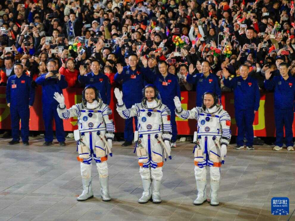 10月31日晚,神舟二十一号载人飞行任务航天员乘组出征仪式在酒泉卫星发射中心问天阁圆梦园广场举行。神舟二十一号航天员张陆、武飞、张洪章领命出征。