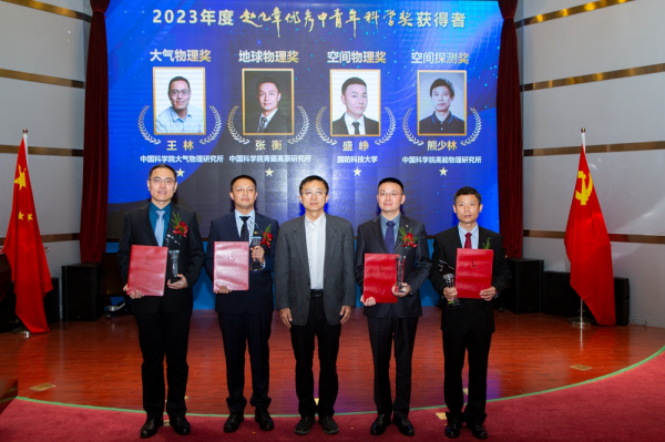 丁赤飚与2023年度赵九章科学奖四位获奖科学家合影