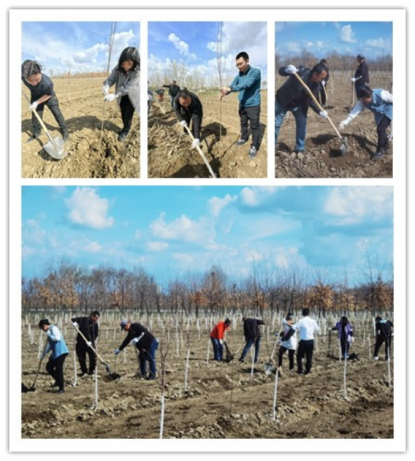 植树现场,大家纷纷来到指定区域,两人一组或挥锹挖坑,或扶树填土,热火朝天的劳动景象,形成了春日里一道亮丽的风景线。经过一下午的辛勤劳动,一株株新栽种的苹果树、海棠树,迎风傲立在沃土中,透出勃勃生机。
