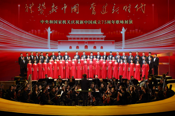 9月20日下午,中央和国家机关庆祝新中国成立75周年歌咏展演——“礼赞新中国·奋进新时代”在中央歌剧院举行。