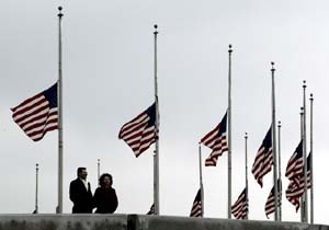 华盛顿纪念碑周围旗杆降半旗向“哥伦比亚”号遇难者致哀