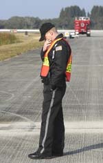 新华网北京2月2日电 1日,在美国佛罗里达州肯尼迪航天中心的跑道上,本来准备迎接“哥伦比亚”号航天飞机返航的一名安全官员默默地站在跑道上哀悼