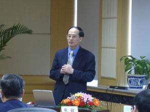 戴汝为院士在评估会上作学术报告 题目为“支持宏观经济决策的综合集成研讨厅”