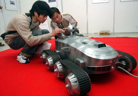 “21世纪航空航天与机器人博览会”2003年3月15日起至4月6日在浙江图书馆举行,我国自主研制的月球车、能够检查核电站的蠕动机器虫、可以躲避鱼雷但能进攻舰艇的鱼型机器人等一批高端产品。