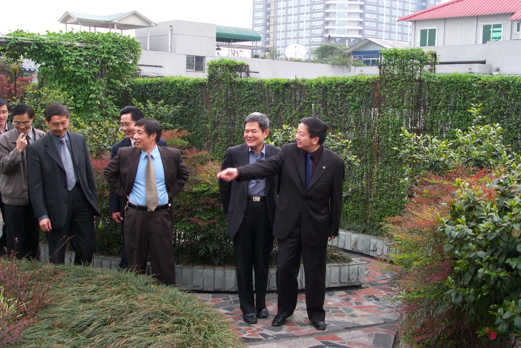郭传杰同志在成都分院领导和成都中心领导的陪同下,兴致勃勃地视察了成都中心在创新文化园区建设中兴修的、供读者和用户休憩、运动的空中花园,看着绿红掩映、草长莺飞的江南三月景象,颇为欣慰。郭传杰同志视察了正在实施改造的旧楼(阅览楼),感慨地说,“由于经费原因,新楼建设和旧楼改造不得不分期进行”。