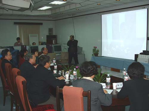 微生物所领导和专家向路院长等领导汇报SARS攻关情况。