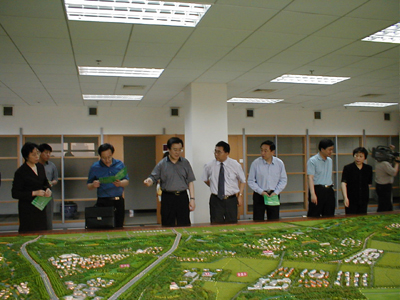 白副院长一行首先参观了朝阳CBD(北京商务中心区)规划沙盘,朝阳区委副书记、代区长陈刚介绍了朝阳CBD规划建设情况,白副院长还饶有兴致地观看了介绍朝阳CBD未来发展的三维动画宣传片。