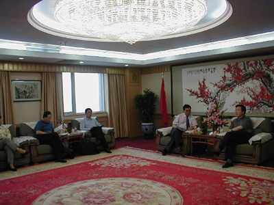 随后,由朝阳区区委书记李世祥主持召开了座谈会,朝阳区代区长陈刚首先向中科院领导介绍了朝阳区的概况,朝阳区作为北京面积最大,人口最多的城区,也是北京的经济强区,全区财政和税收收入均居北京市各区之首,年税收收入为全国税收的1.2%,今后几年,朝阳区将抓住CBD和奥运等契机,重点发展高技术产业和现代服务业。