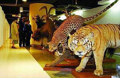 SARS风波渐趋平缓,这个延期了一个多月的展览终于揭幕了。这里汇聚了包括古生物和地质、昆虫、鱼类、哺乳类、鸟类、两栖爬行、无脊椎八大门类总共八万多件标本,均是首次在上海科技馆亮相。在古生物地质藏品区,你可看见在云南禄丰发掘的距今2亿年(侏罗纪早期)长达六米的肉食性恐龙——双冠龙,同时有生活于白垩纪的禄丰龙,翼龙、恐龙蛋、琥珀等各种各样的古生物标本将你带入史前神秘的世界;地质区展现的各种天然宝石、奇异的矿石晶体令人心醉神迷,来自天外的长兴岛陨石能激起你一探宇宙的遐思;在昆虫藏品区,映入眼帘的是翩翩蝴蝶,有国家一级保护金斑喙凤蝶、有“梁祝”化身的端红粉蝶、酷似枯叶的枯叶蝶,还有各种各样的蜂巢;鸟类藏品区展示的不仅有珍稀的朱、金雕等,更有保藏了上百年的113种标本;哺乳动物(图库)区展示的标本有大熊猫、虎、针鼹,仅国家一级保护动物就达38种之多;两栖爬行区里能一睹蟒蛇、巨鳄、巨龟的风采;无脊椎藏品区展开了一个奇异的世界……