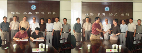 新疆分院院长周俊林主持了签字仪式,新疆理化技术研究所所长任迪远、新疆伊犁天一实业有限责任公司总经理杨咏在协议书上签字。新疆科技厅副厅长胡克林、新疆分院副院长、新疆理化技术研究所副所长吾满江·艾力博士、乌鲁木齐经济技术开发区副主任刘震等参加了签字仪式。