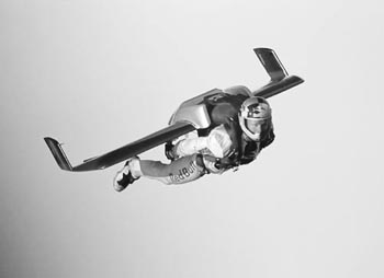 滑翔过程中,鲍姆加特纳身穿一套符合空气动力学原理,并能在高空保暖的特殊服装,还装备了用于在氧气稀薄的高空呼吸的器械。此外,他的“行头”还包括一个长1.8米的“翅膀”,“翅膀”由特殊的碳合金制成,与一级方程式赛车使用的轻型材料相同。鲍姆加特纳选择清晨飞行是为了避开各类飞机,而空管中心则特意把当天5时45分到6时15分这半个小时留给了这名极限运动挑战者。