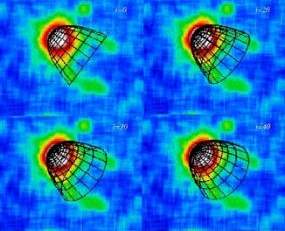最近借助XMM-牛顿X射线观测台对这颗脉冲星进行的研究发现,它带有两条由X射线组成的长“尾巴”。来自意大利米兰天文物理及空间物理研究所的帕特里茨-卡拉维教授和她法国及德国的同行进行了广泛深入的研究后得出最后结论。他们认为,这两条长“尾巴”是这样形成的——脉冲星以极快的速度旋转并形成强烈的磁场,这个强磁场能够“捕捉”到周围的高能电子,而XMM-牛顿X射线观测台所记录下来的X射线带则正是这些电子所发出来的。