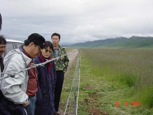 近日,科技部21世纪中心国家“十五”科技攻关计划重大项目“中国西部重点脆弱生态区综合治理技术与示范”管理办公室的张巧显女士和刘国华副研究员来到海拔近4000米的青海省果洛藏族自治州,对由西北高原生物研究所、青海省畜牧兽医科学院和果洛州农牧局等单位共同承担的02课题“江河源区退化草地治理技术与示范”的进展情况和基地建设进行了检查。