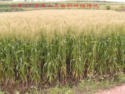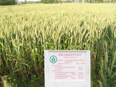 成都生物研究所小麦育种课题组,在广泛收集国内外优良种质资源的基础上,采用复合杂交,经成都-昆明-海南异地加代选育,又育成了2个小麦新品种川育16、川育17通过四川省品种审定。其中,川育16高产稳产,参加国家小麦品种(长江上游冬麦组云南、贵州、四川、重庆、陕西、湖北、河南)区试,最高亩产501.2kg,两年平均亩产348.7kg,比对照“绵阳26”增产18.05%,居第一位,是国家区试中增产幅度最大,表现最突出的四个品种之一。该品种田间长势长相好,穗层整齐,穗大,粒大,白粒,千粒重高(48克左右),商品性好,高抗条锈病,深受种子部门和农民群众的欢迎。2003年2月通过国家农作物品种审定委员会审定,列为四川省重点推广品种和国家示范品种。“川育17”抗条锈病,品质优良,是当年区试中品质最好的品种(系)之一。两年四川省区试平均亩产332.2kg,比对照川麦28增产14.25%。川育16、川育17小麦新品种的育成,对促进四川麦区及长江上中游地区小麦生产发展,解决小麦抗条锈病问题具有重要意义。