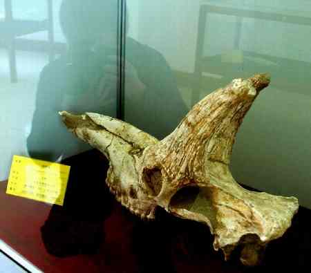 六日开馆的和政古动物化石博物馆展出的,是近年来在和政县及临近地区所发现的哺乳动物化石(俗称龙骨)的一部分。在这里,记者看到许多已经灭绝的古代动物化石,既有下颌呈铲状的铲齿象、脖子还未完全变长的长颈鹿、每条腿有三个蹄子的三趾马,也有不长角的大唇犀,此外还有仅在当地发现并命名的和政羊等。