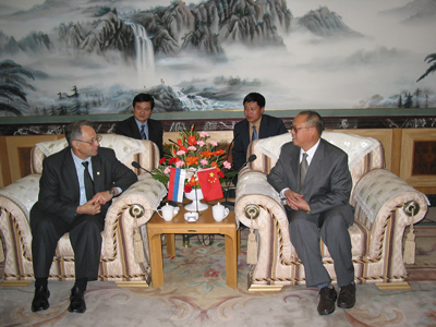 10月16日晚,长春市副市长钱龙生在长春中日友好会馆会见并宴请了俄罗斯科学院西伯利亚分院学术秘书长福明(V·Fomin)院士一行,并与福明等来访科学家进行了亲切会谈。