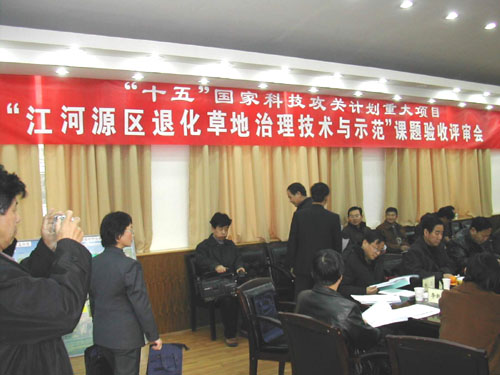 西北高原生物研究所主持,与青海省畜牧兽医科学院、青海省果洛藏族自治州农牧局、青海省果洛藏族自治州草原站共同完成的国家“十五”科技攻关计划重大课题“江河源区退化草地治理技术与示范”进行了验收。