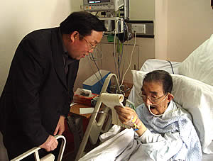在医院,白春礼副院长详细询问了贝老的病情,一再叮嘱他要安心养病,并祝他早日康复出院。由于贝老的身体原因,他与白春礼的见面成了一次没有语言的对白。白春礼把每一点问候、每一句祝福都清晰地写在纸上,贝老读完后,双手合十,激动地向中科院领导表示感谢,他还与白春礼互相祝福新春佳节。