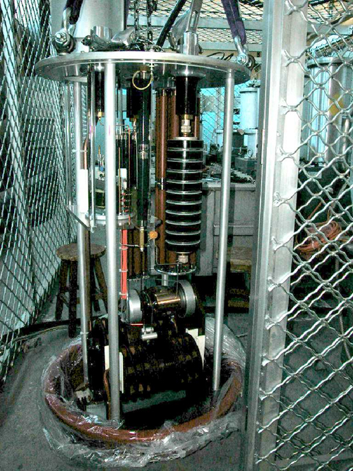 这套高频系统是欧洲核子研究中心(CERN)赠送的,于2002年8月底运至高能所。由于这套系统在CERN是工作在连续波模式,和我们的脉冲工作模式不相同,所以,必须对这套系统做大量技术改进,并根据需要自行设计制造一些必要设备。整个系统包括100kV高压电源、可控硅调压系统、大功率速调管、长脉冲硬管调制器、撬棒保护系统、控制系统、环行器、功率传输系统及冷却设备。由于设备在CERN拆卸的过程中,所有的联线都被切断,同时又无任何技术资料,从而给工作带来了巨大的困难。在一年多的安装、改进、调试过程中,由于高能所领导的关心支持和加速器中心领导的组织协调,洁净核能课题高频功率源组与所电气车间、通用运行部、修建工程队、所工厂等部门的通力合作,加班加点,克服了种种困难,解决了一个又一个技术难题,终于获得了成功。