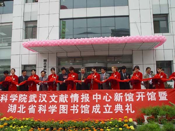 随后,路甬祥院长与湖北省政协副主席、湖北省科技厅郭生练厅长一起为湖北省科学图书馆揭牌。并为为武汉文献中心的新馆开馆剪彩。 |