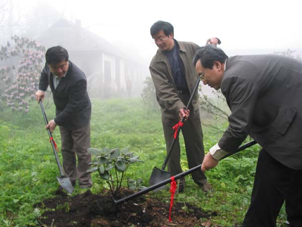 随后陈副院长等一行还兴致勃勃地在中国杜鹃园内定植了两棵由华西亚高山植物园精心培育的国家保护植物——蓝果杜鹃作为纪念。当日下午,陈副院长一行参观了都江堰水利工程和古堰景区。 |