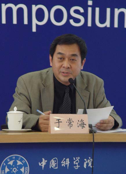 北京大学教授、大会秘书长于常海出席“2004全球华人生物科学家大会”情况通报会。