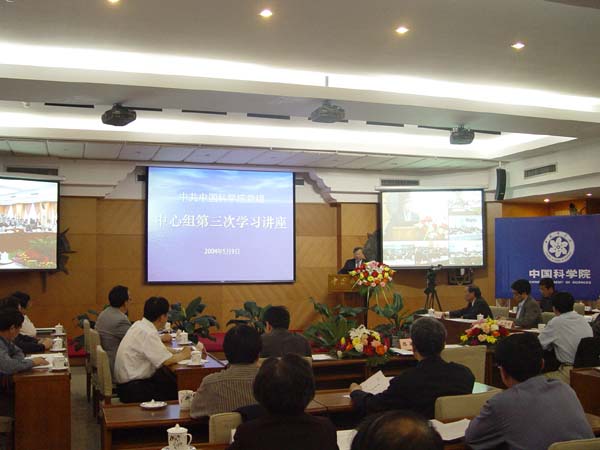 院长路甬祥主持学习并作了“关于新的科技发展观的若干思考”的报告。