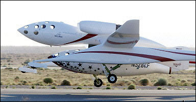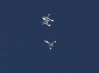 刚刚起飞的“白色骑士”及身下携带的“太空船一号”