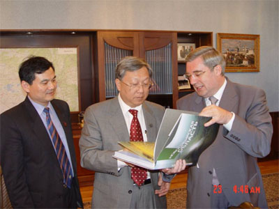 俄联邦新西伯利亚州州长托洛孔斯基向路甬祥赠送新西伯利亚州地方志图集。