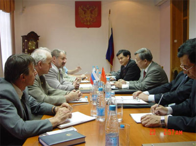会见时路甬祥说,今年是中俄两国建交55周年。近年来,两国在各领域的全面合作取得了长足的进步,中俄两国的政治互信和战略协作为推动双边经贸、科技等领域的合作创造了有利条件。2003年末中俄两国元首达成共识,将2004年确定为“中俄青年友谊年”,双方计划举行青年交流系列活动。今年5月,我院陈竺副院长率我院青年生物学科学家访俄,我院白春礼副院长又于6月率团访俄,也访问了新西伯利亚。中俄两院还在西伯利亚科学城联合举办了第二届中俄科技合作论坛。这些活动加强了青年之间的交流,对于进一步继承和发展中俄两国人民的传统友谊、对促进和夯实两国友好关系具有重要意义。在谈到两国区域间合作时路院长说,中俄两国应利用地缘优势充分开展区域间合作。我这次访俄,主要目的之一就是与俄院西伯利亚分院商讨共建中俄科技园的问题。我们代表团中有我院在东北地区的长春分院和沈阳分院的院长,他们对开展与西伯利亚的合作抱有浓厚的兴趣。希望双方本着战略协作的精神,促进双边交流与合作,为两国关系的进一步发展,特别是区域间的合作做出新贡献。