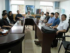 2004年8月27日上午,留法纳米科技代表团成员、法国国家科研中心陈勇教授和白晋波研究员来到国家纳米科学中心访问并进行学术交流。国家纳米科学中心查连芳副主任、王琛副主任、首席科学家朱星教授和江雷研究员以及中心的科研人员参加了座谈。