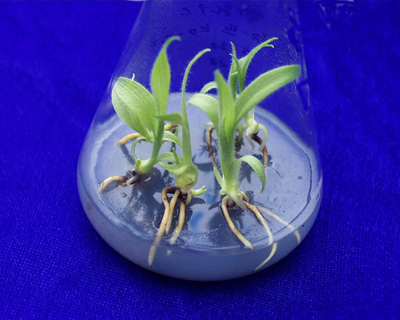 这些引起人们关注的兰花就是昆明植物所胡虹研究员带领的科技人员新近成功研发的具有自主知识产权的云南野生拖鞋兰和独蒜兰新品种。在国家科技部“西部开发”重大项目“云南野生特色花卉新品种选育及生产技术研究”等支持下,科技人员长期以来一直致力于具有观赏价值的云南野生兰花的研究开发,取得了喜人的成果。在国内首次进行杓兰、兜兰和独蒜兰的种子无菌萌发和组织培养并获得成功,同时获得了批量的杓兰、兜兰和独蒜兰的瓶苗。