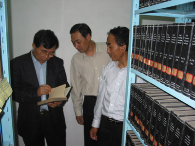 白春礼副院长在南古所图书馆观看最老的古生物专用图书。