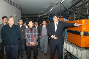 高能所陈和生所长首先向领导们汇报了高能所的概况、主要研究领域和研究方向,北京正负电子对撞机国家实验室15年来面向国内外开放研究的情况,取得的主要粒子物理成果及同步辐射应用研究成果,正在进行的北京正负电子对撞机重大改造工程的进展情况,及高能所中长期科技发展规划的制定情况。