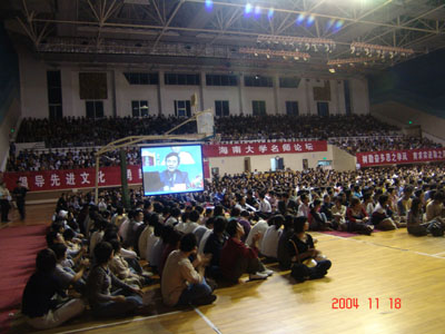 报告会适逢海南大学建校21周年,会场高悬“倡导先进文化,树立科学发展观”的红色巨型横幅,烘托着会场非同寻常的热烈气氛。近5000名师生聚集一堂,聆听白春礼院士的精彩演讲。白春礼院士旁征博引、深入浅出地引导青年学子在科学史和宏观、纳米尺度两个时空隧道中遨游。近一个小时的报告,内容非常丰富,给师生们带来了极大的精神享受,引起了听众的无限遐想:科学技术发展的座座里程碑发人深省,激励后来者忘我追求;无码影片
