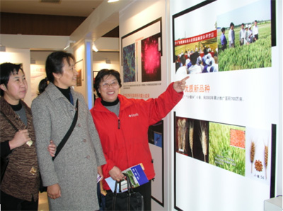 走进大厅,在讲解员的带领下,大家沿着展厅,细心观看了中科院科技创新发展的历程,以及党和国家领导人的关怀。展览以图文并茂的形式展示了我院开展知识创新工程以来所取得的重大科研成果。当看到遗传发育所的科研成果时,大家感到十分自豪,纷纷拍照留念。