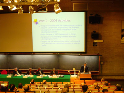 李静海副院长新当选为TWAS院士并在会上接受院士证书。作为2003年TWAS农业奖得主,我国华中农业大学的傅廷栋教授作了“有35年历史的中国杂交油菜籽研究”的专题报告。 |