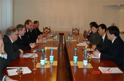 长春分院联合代表团于2004年12月24日至12月29日访问了新西伯利亚州和俄科院西伯利亚分院。访问期间,代表团团长、吉林省副省长陈晓光教授分别就具体落实在长春市和新西伯利亚市建立中俄科技园问题与新西伯利亚州V.A.多罗贡斯基州长和俄科院西伯利亚分院院长L.N.多布列佐夫院士进行了会谈。2004年12月28日,吉林省副省长陈晓光、中科院长春分院副院长苏阳、俄联邦新西伯利亚州副州长G.A.萨巴什尼科夫和俄科院西伯利亚分院学术秘书长V.M.福明院士分别代表吉林省人民政府、无码影片