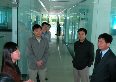 李家洋副院长一行首先参观了研究所的实验室,刚刚由珠峰完成科学考察回京的王小萍副研究员汇报了实验室有关情况,李家洋边看边认真地询问了实验室的研究方向、人员配置、仪器装备及工作进展状况,对实验室的工作表示肯定,并鼓励大家继续努力为科研服好务。